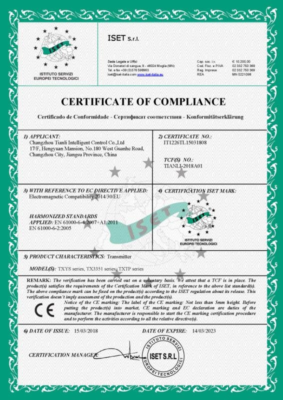 CE變送器證書