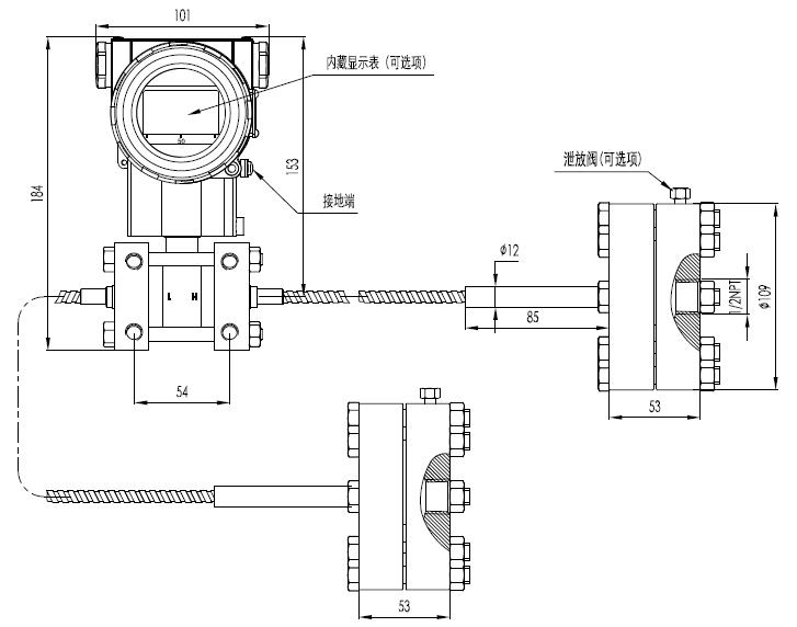 低壓側為變送器本體額定壓力,高壓側為遠傳法蘭額定壓力,可能出現可修正的零點漂移。